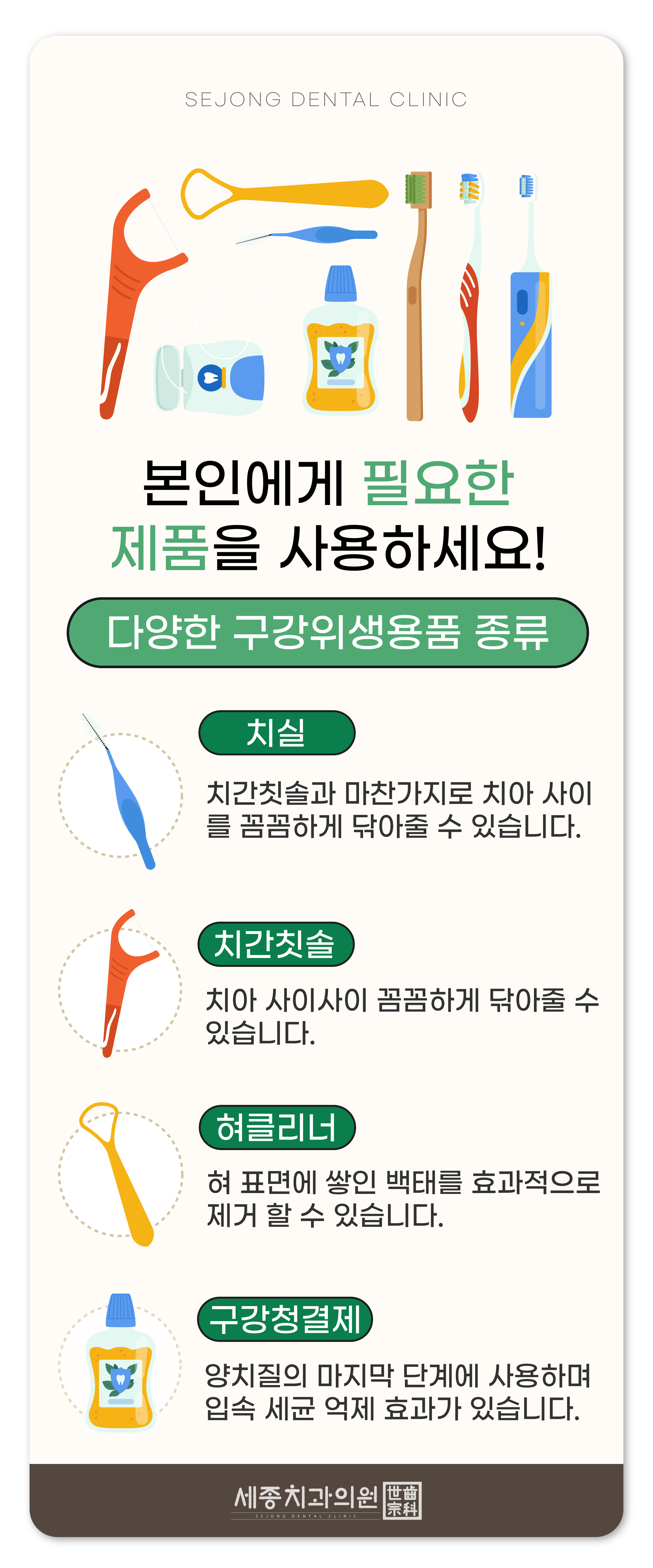구강 위생 용품의 올바른 사용으로 스스로 구강 건강 잘 지켜내주세요.
