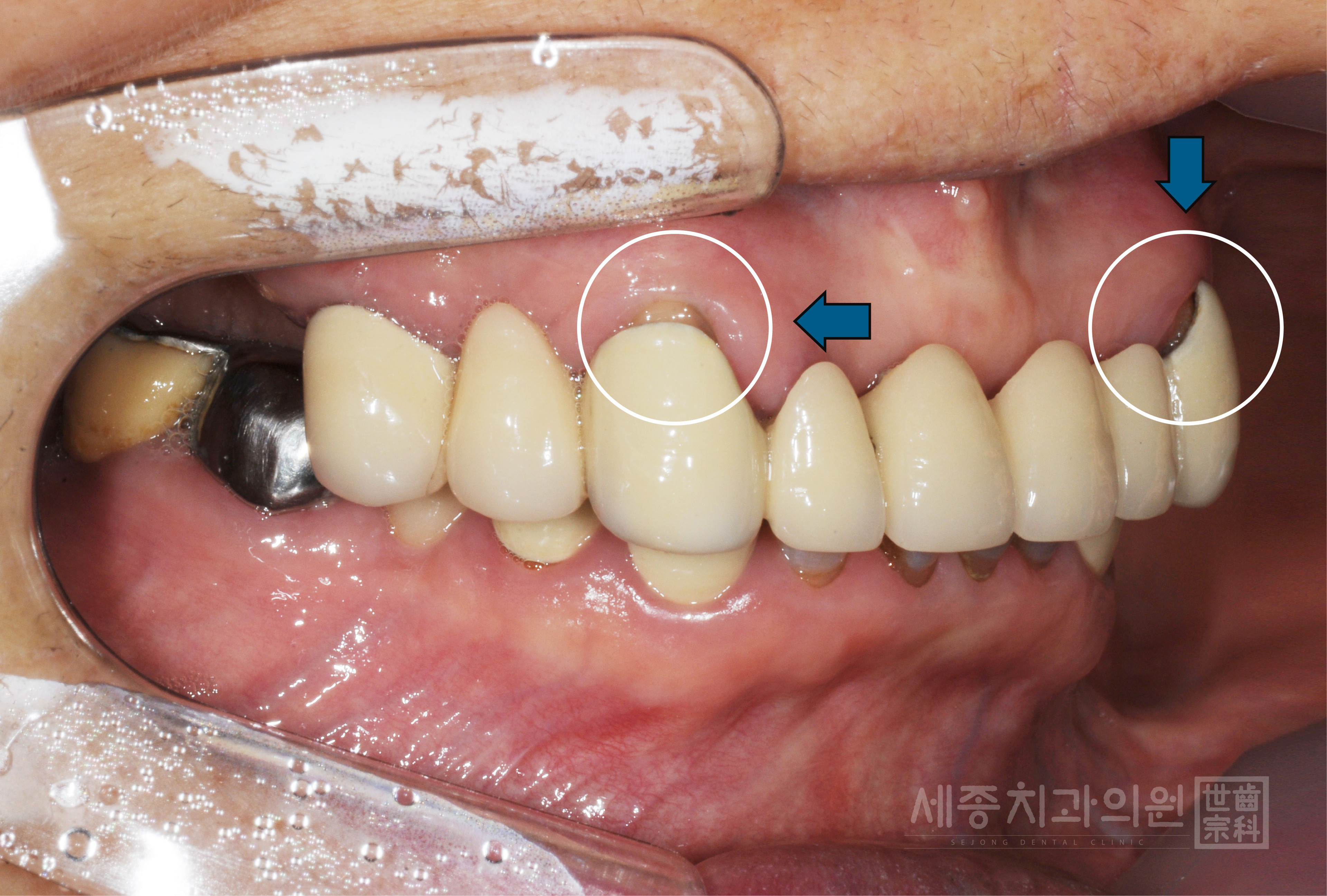 부산임플란트 세종치과 10주년 기념으로 2014년에 내원하신 환자분의 케이스를 통해 브릿지와 임플란트의 장단점을 알아보는 시간을 가져보도록 하겠습니다. 환자분의 경우 첫 내원을 했을 때 치아를 상실한 부위를 치아 브릿지로 치료를 하신 상태였는데요.